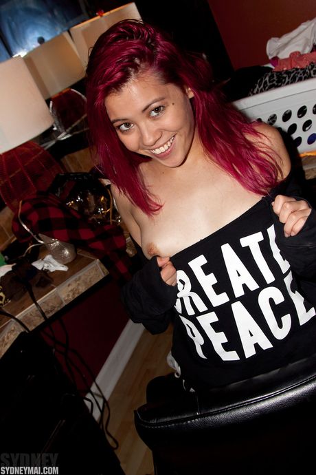 Pink Velvet Vault: Asian teen Sydney Mai strips off and unveils her tiny tits and pink pussy